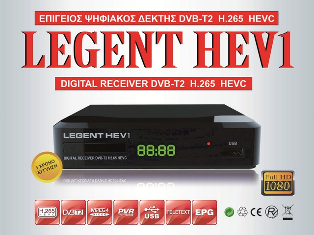 Αποκωδικοποίηση DVB-T2 H.265 HEVC , MPEG-4 AVC/ H.264 HP@L4.1, , Full High Definition.